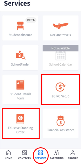- eGIRO and Edusave Standing Order(for Singapore Citizens only) can be applied thru the Parents Gateway app